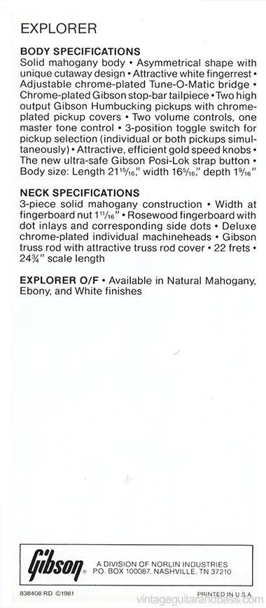Like 1970s reissues of the Firebird and Flying V, the Explorer was produced in significant numbers, yet not mentioned in any US catalog or price list of the decade.