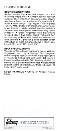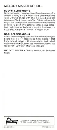 This is (among) the first Gibson publicity material to mention the new Norlin Nashville address, replacing the older Lincolnwood, Illinois.