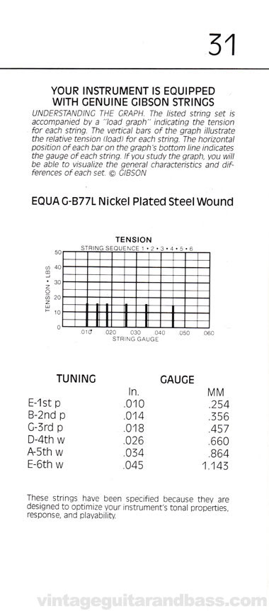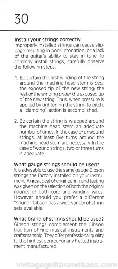 This page continues from the previous pages with further information on strings; how to change them, which strings to use and details of the factory-installed string set fitted. The Victory MV guitars, at least in 1981, were fitted with nickel plated steel wound, set Equa G-B77L (.010"-.045").