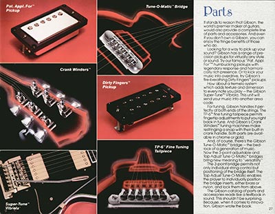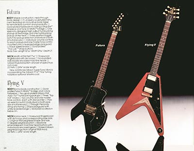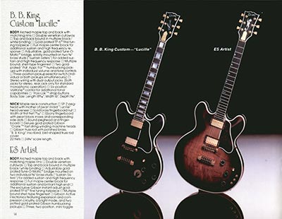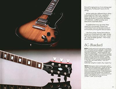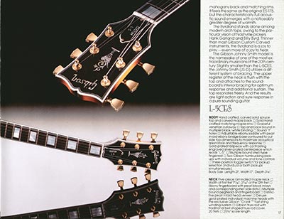 This sumptuous publication was the very last US catalog of the Gibson Norlin period, even though it remained owned by the group until January 1986. 28 pages full colour throughout, dimensions 11" x 8 1/". The 1983 Gibson catalog features the following guitars and basses: