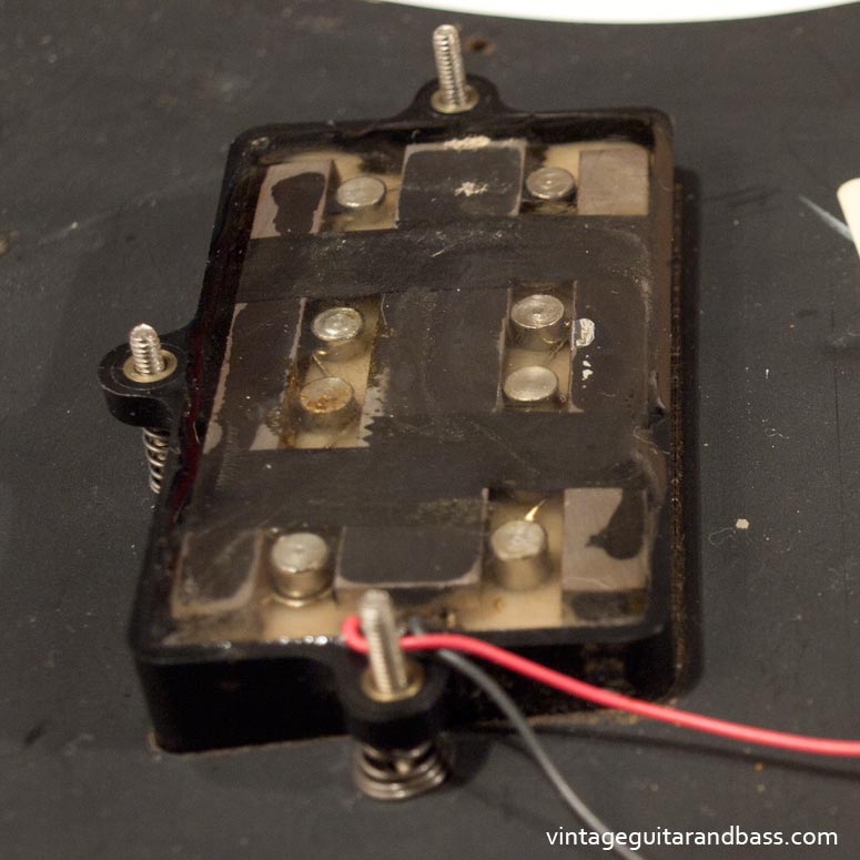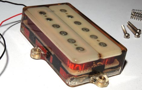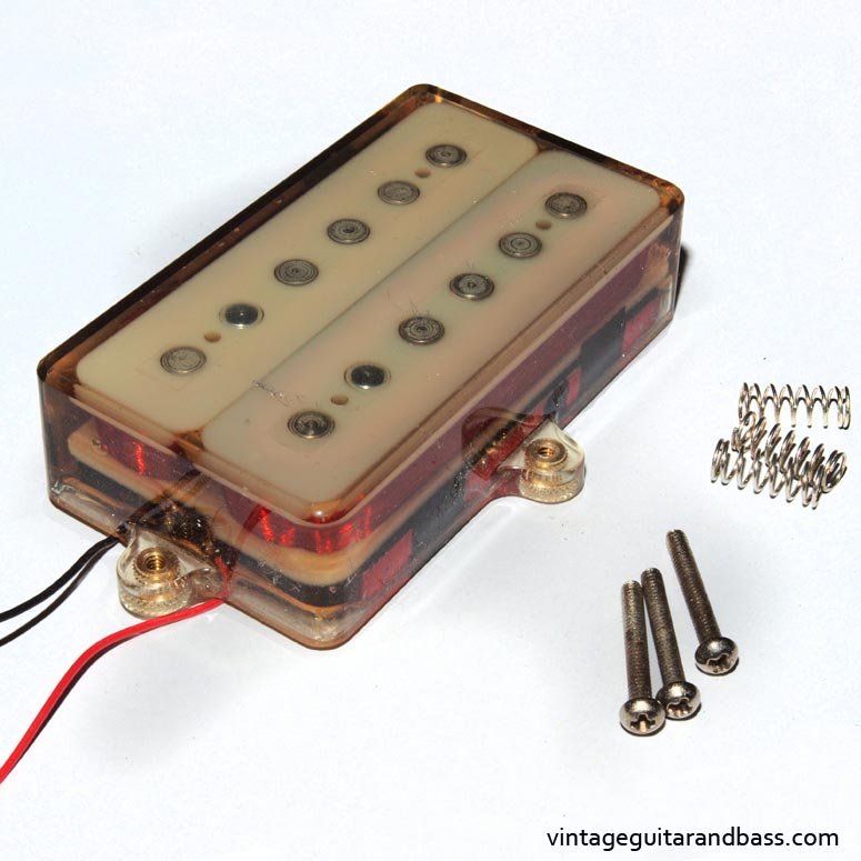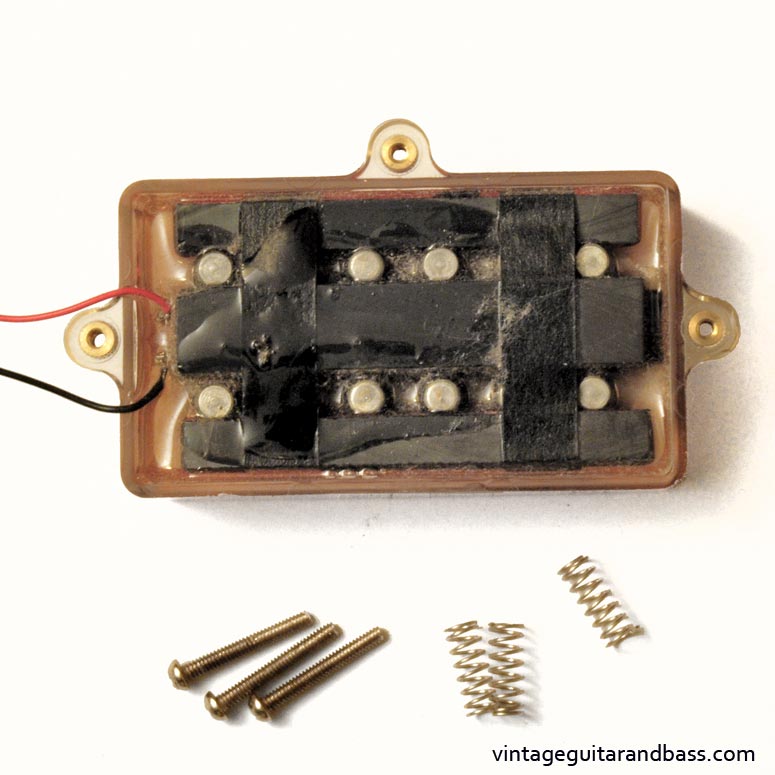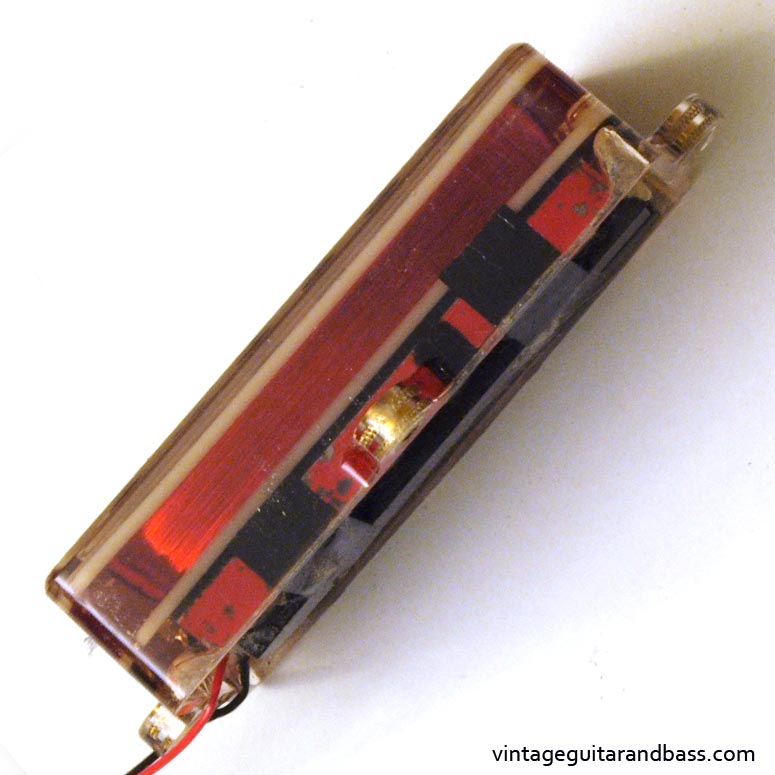 Between 1974 and mid-1978 pickups were mounted in a translucent cover allowing the coils and formers to be seen, although potten in resin, so not removed. In Summer '78, as the 'clear' pickups were used up they were replaced with opaque black covered examples