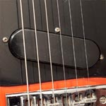 The Sonex-180 Deluxe was an entry level Gibson instrument, made with a innovative new 'Multiphonic' body material at the Gibson plant in Nashville, USA. It had simple construction and was fitted with basic components; these pickups are often (incorrectly) referred to as Velvet Bricks, or Dirty Fingers (see above), but although similar in appearance, were in fact a lower-cost unit produced in Japan (anyone know who by?) - Dirty Fingers were fitted to the Sonex-180 Standard and Custom models. They were later fitted to the Gibson Invader. Part numbers 13248 (neck) and 13249 (bridge). Dimensions: 70mm x 38mm x 18mm (excluding mounting tabs); Surround, 92mm x 45mm; Mounting screw holes are 78mm apart. DC resistance: The pair pictured were 7.6kΩ (front) and 7.7kΩ (back). more