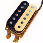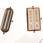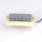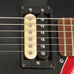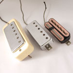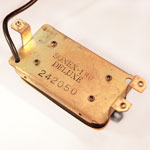 This mini humbucker was introduced in 1969 with the new Les Paul Deluxe. It is somewhat smaller in size (1.078" x 2.578") than the standard PAF humbucker used in the Les Paul Standard and Custom, and also brighter sounding, perhaps somewhere between single coil pickups and the standard PAF humbucker. Gibson part 13544 front, 13545 rear (1971,1977); 13394 front, 13395 rear (1981).