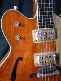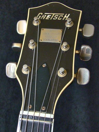 The pickups are Patent Number Filter'Trons, it has a mute, a gold plated headstock badge and no real f-holes. All of these features would soon be gone. (See a 1976 Country Gent).