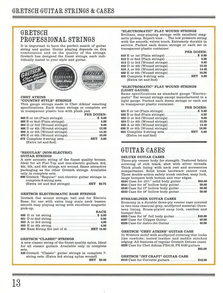 1965 Gretsch guitar catalog page 13 - Gretsch guitar strings and cases