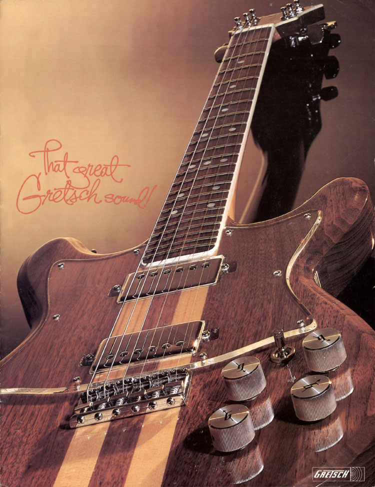 The cover of the 1979 Gretsch catalogue features a new solid body guitar, the Gretsch Committee model 7628. This guitar, along with the bass equivalent, model 7629, was an exciting departure from Gretsch, using uncharacteristic construction techniques (through neck) and with the contrasting maple/walnut laminations as a feature to be highlighted... very much of it's time, and great instruments... just not the guitars usually associated with the brand.