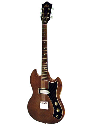 It had a mahogany (or alder) body with a set mahogany neck with a rosewood fingerboard. Dot finger board inlays and no inlay on the headstock. It had just one pickup and simplified controls (just volume and tone). Most had a Guild humbucker, though instruments with a single coil pickup may also exist.