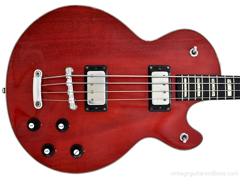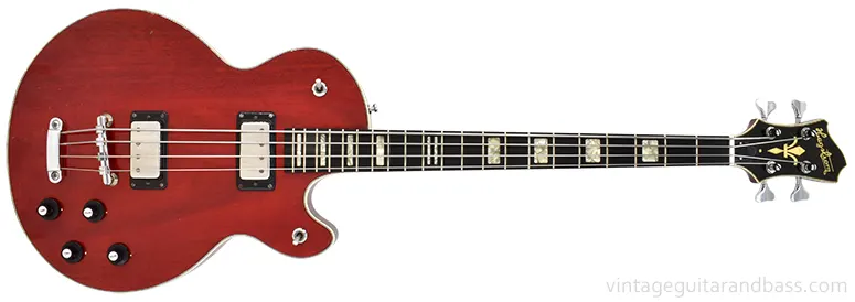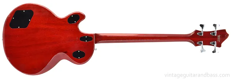The Hagstrom Swede Bass was in production between 1971 and 1976, and this example was part of the third batch of Swede basses produced in Älvdalen, Sweden, in 1973. Initially translucent Cherry (polyester) was the only finish available (as seen here), later joined by Black and Natural.