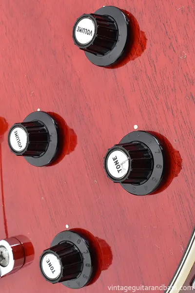 1973 Hagstrom Swede Bass control knobs: a volume and tone control for each pickup.
