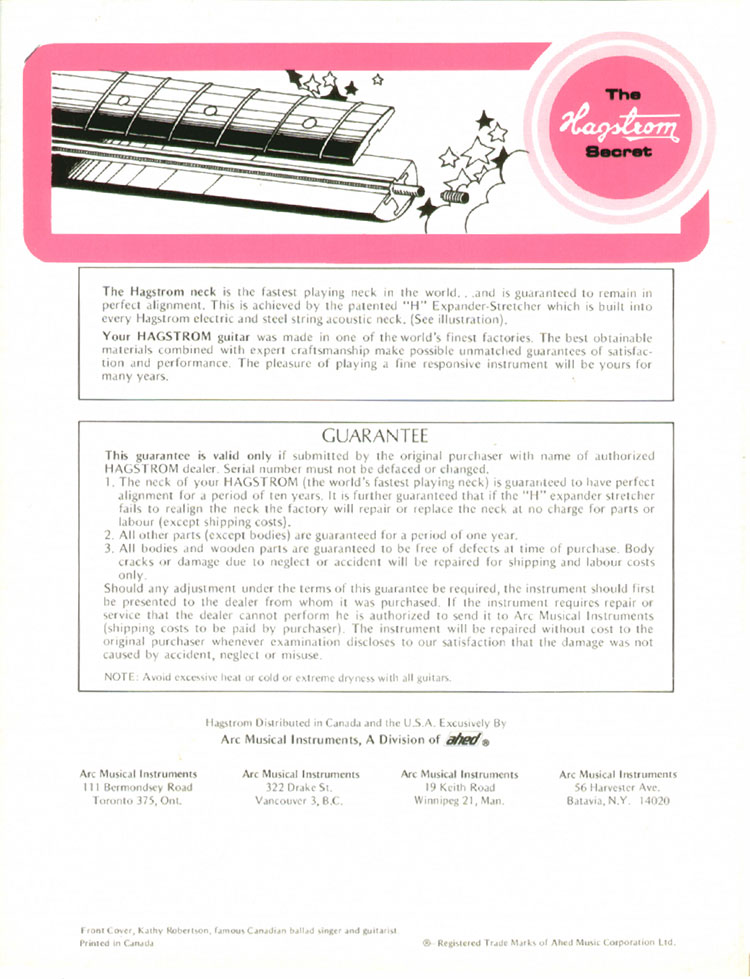 1973 Hagstrom Viking 1N new old stock electric guitar. Sunburst finish, chrome hardware, rosewood fretboard, dot inlays with 22 frets.
