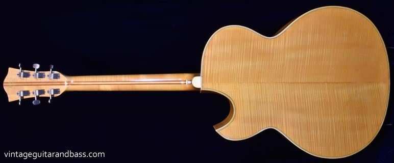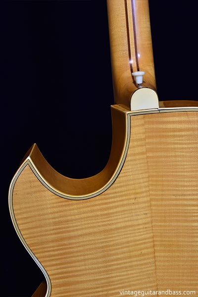 This is a beautifully-built guitar: from the book-matched maple back, and laminated neck; all made using really nicely grained woods - to the extra details like the 6-ply binding and heel cap. Of course Hofner made far finer, and more ornate guitars (check out the Hofner Committee for example), but for a mid-priced instrument this is one really nice guitar.