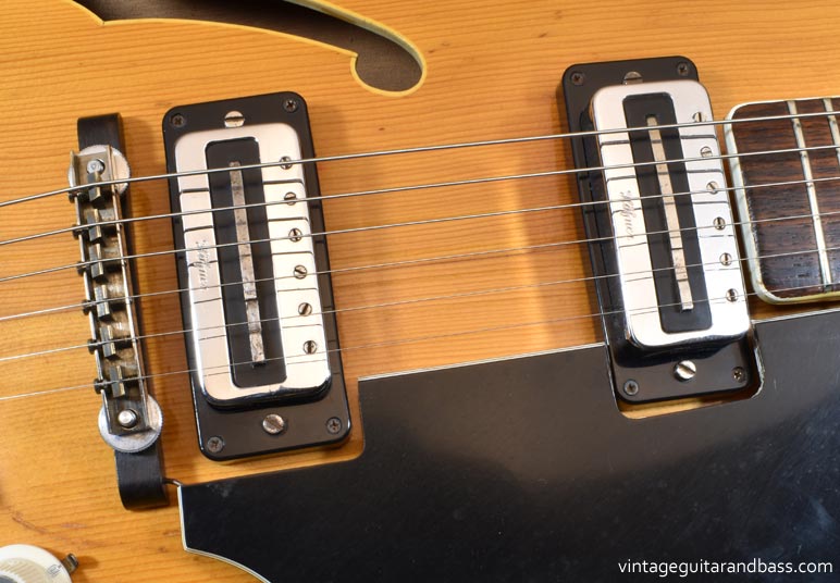 The pickups fitted to this guitar are both Hofner 513 bar pickups.