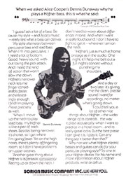 1974 Hofner advertisement, featuring Hofner endorsee Dennis Dunaway; bassist for the Alice Cooper Group