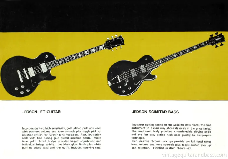 The Jedson Jet, model 4444 was an early 1970s Gibson Les Paul copy built by Matsumoku for UK distributor Dallas Arbiter / Dallas in the early 1970s. It took its name from its jet black finish - the classic look of the Les Paul Custom.