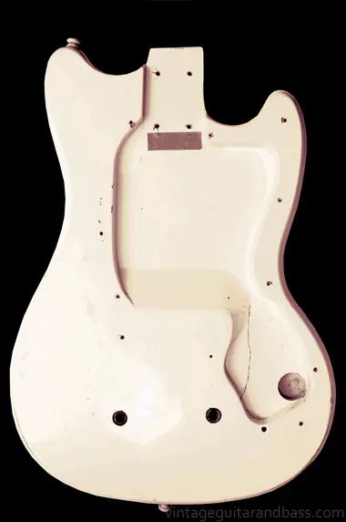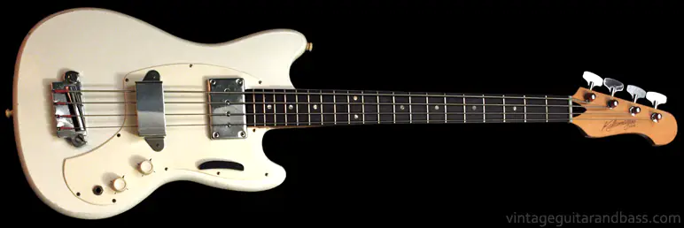 The Kalamazoo KB bass guitar was shipped from 1966, up until 1969. This vintage Kalamazoo bass comes from the first year of production, 1966 and has the offset Fender Mustang body style. This changed to the more familiar SG style towards the end of the decade. See a 1967 SG-styled KB1 bass.