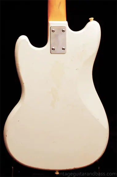 The combination of cheap price, and quality Gibson components made these popular guitars, selling well in 1966 and 1967. White was by far the best selling colour of 1966 (see Kalamazoo KB bass shipping stats); this bass is one of 1347 white KB basses shipped that year.