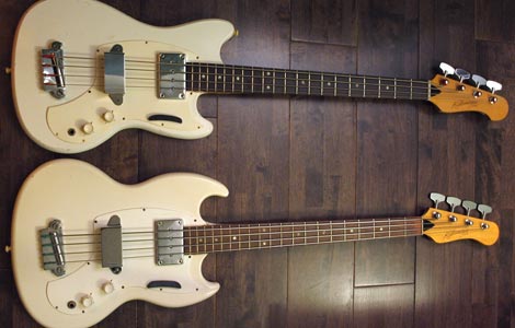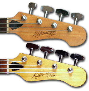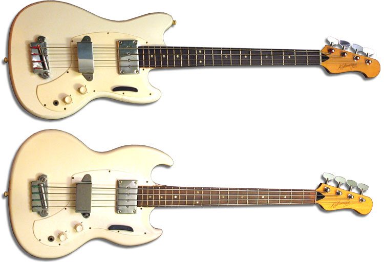 The two Kalamazoo bass body styles are shown here, with the Mustang shape top and the SG shape below.