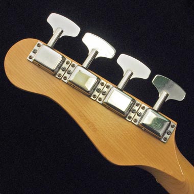 Two Kalamazoo bass headstocks: above, the more angular Thunderbird-style, below the smoother Fender-styleThe Kalamazoo series had a bolt-on maple neck; (something that Gibson, up until this point typically didn't do), a rosewood fingerboard, and were short scale. There were two subtly different headstock shapes, the first has a characteristic 'beak' shape, and is almost identical to that of the non-reverse Thunderbird (see images below). The second style, appearing on the SG-shaped bases is more like that of a Fender, though a little more rounded. The Kalamazoo logo is engraved on the headstock. The necks were actually pretty well made, and are highly playable.