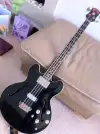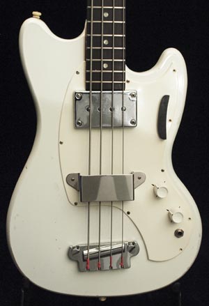The original bass had the same styling as the guitars; that is, they were really a copy of the Fender Mustang. Though to be fair, they were fitted entirely with Gibson hardware. The audacity was compounded by offering the line in the same three bold finishes as the Mustang: red, white and blue. So Gibson hardware and $80 cheaper than a Fender...