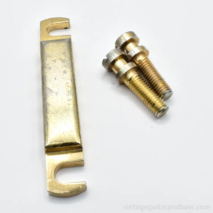 The Matsumoku hook-on tailpiece was a Japanese-made replica of the tailpieces fitted to Gibson solid bodies such as the Gibson Les Paul. It first appeared on the Matsumoku Les Paul copies circa 1969/1970, but was used on a number of other solid body guitars produced at the Matsumoku factory, Matsumoto Japan, from 1969 through to the mid 1970s. This facility produced guitars for export around the world, and this tailpiece appeared on guitars branded: Aria (5522), Shaftesbury (3400), Univox (U1983 "The Mother") - and most likely many more.