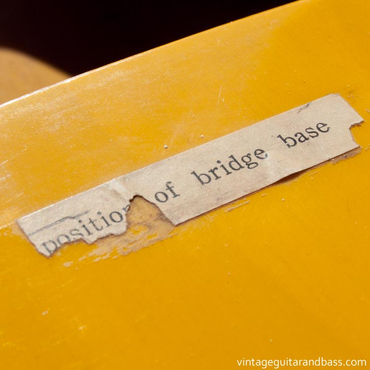 The bridge is easily positioned thanks to the paper position marker glued to the guitar body (see below).