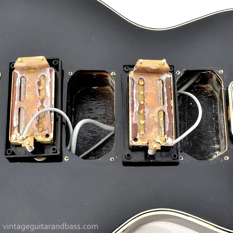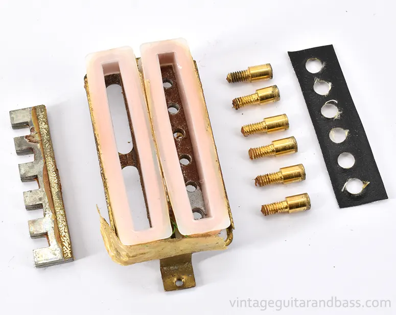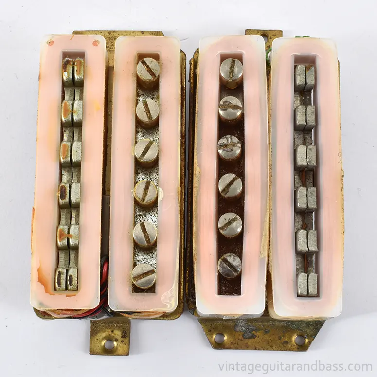 These pickups share several features in terms of construction with the trapezoid single coil pickups fitted to Matsumoku guitars from 1966. For example both pickups have a vinyl fabric strip over the polepieces. Another similarity between the two pickups is the shape (but not dimensions) of the polepieces.