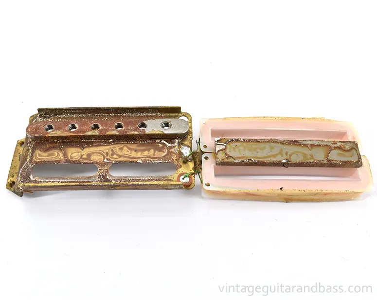With the mounting rings removed. These pickups are largely held together with dark brown glue.