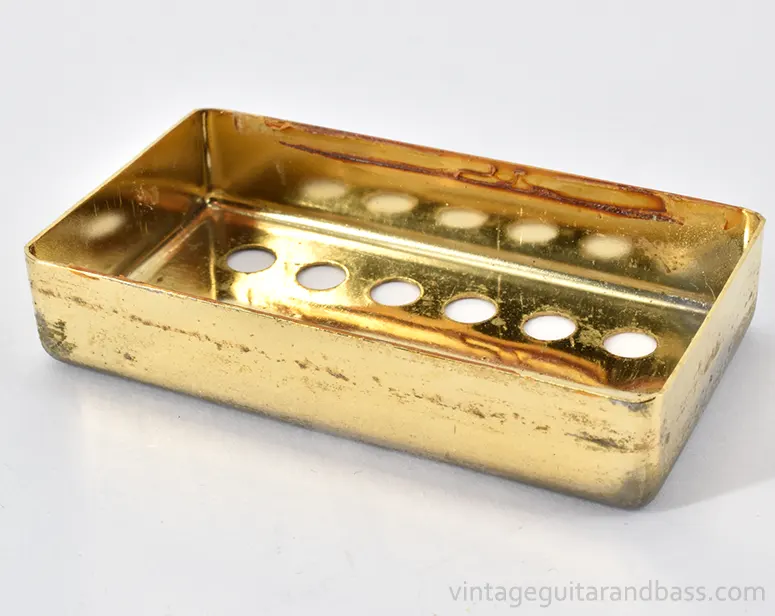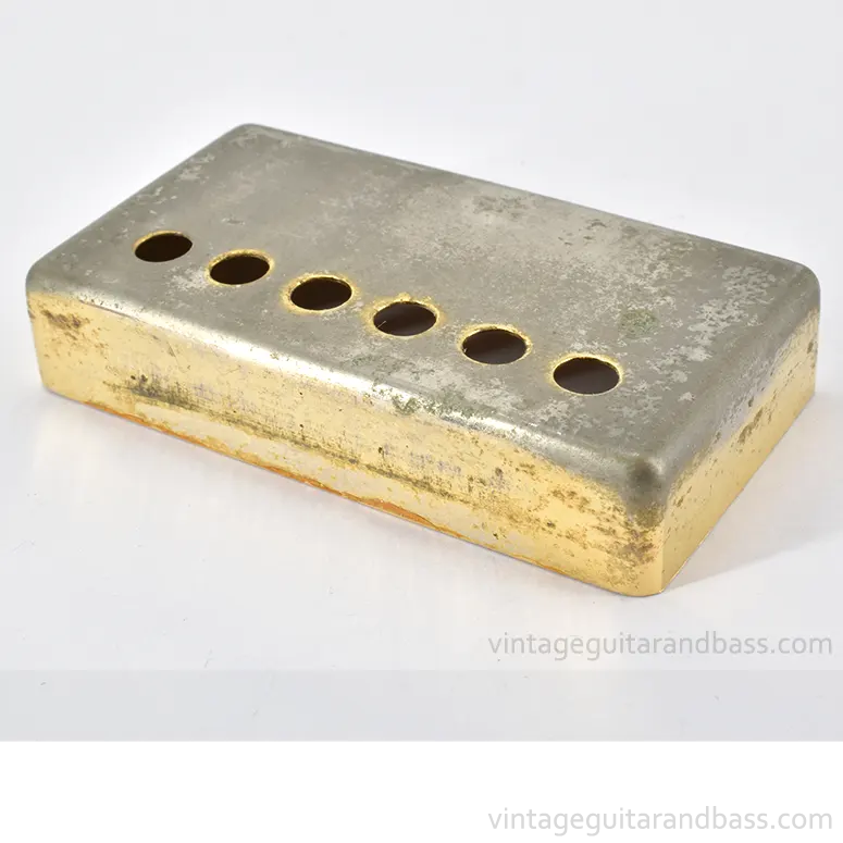 The gold-plating of this pickup has largely worn away, although it is most visible on the pickup sides, generally the areas protected by the plastic mounting rings.