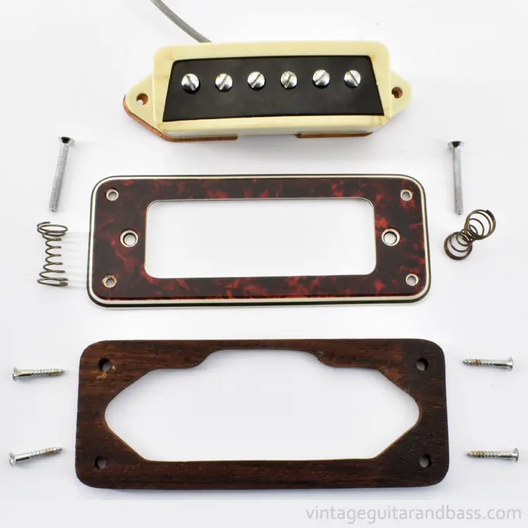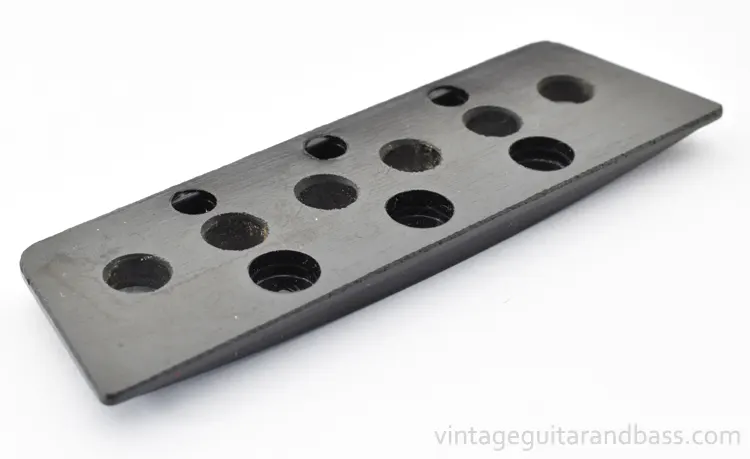 Matsumoku trapezoid pickups fitted to a Commodore N177. The biggest issue with these pickups is the fragility of the plastic surrounds. Damage does not always affect functionality, which is somewhat fortunate as examples without damage, or at least small cracks are rare.