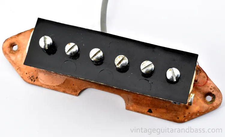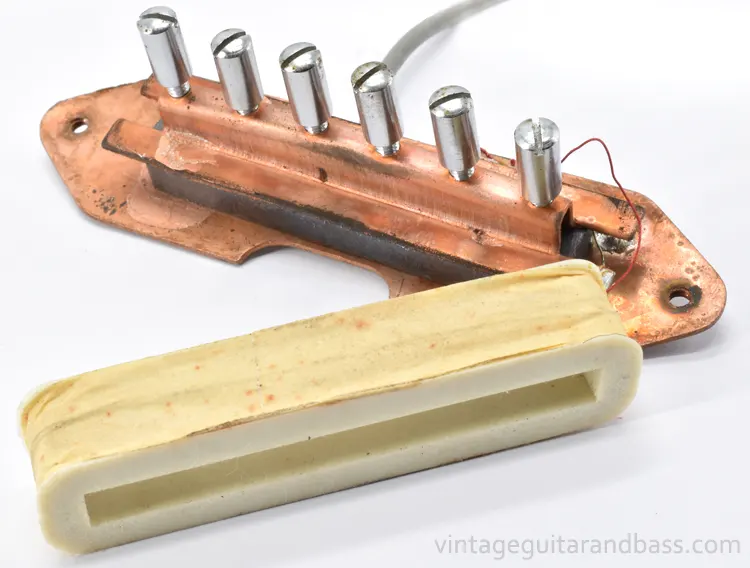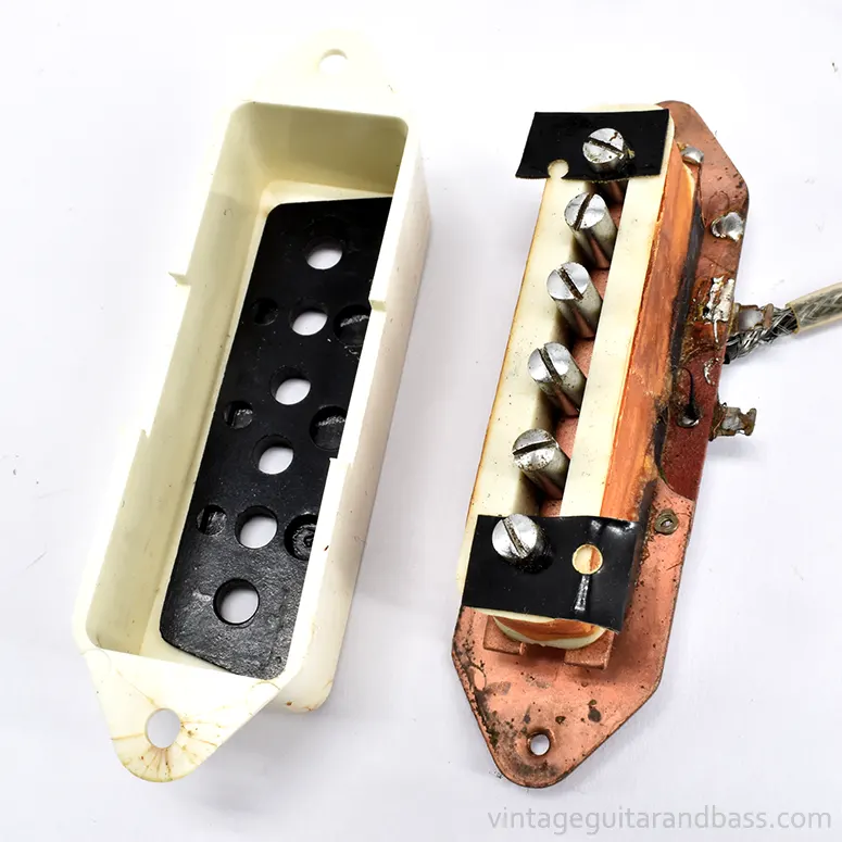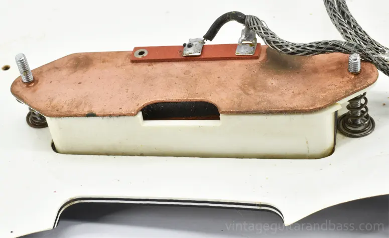 The pickup underside (pickguard mounted) from a 1971 Epiphone 1802T.