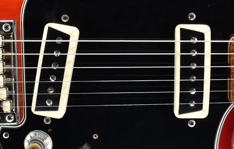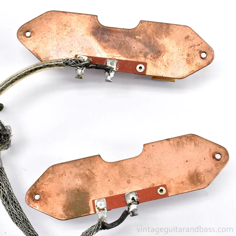 A pair of Matsumoku trapezoid pickups fitted to a 1971 Epiphone 1802T (ET-270). This was the only Epiphone model to be fitted with these pickups.