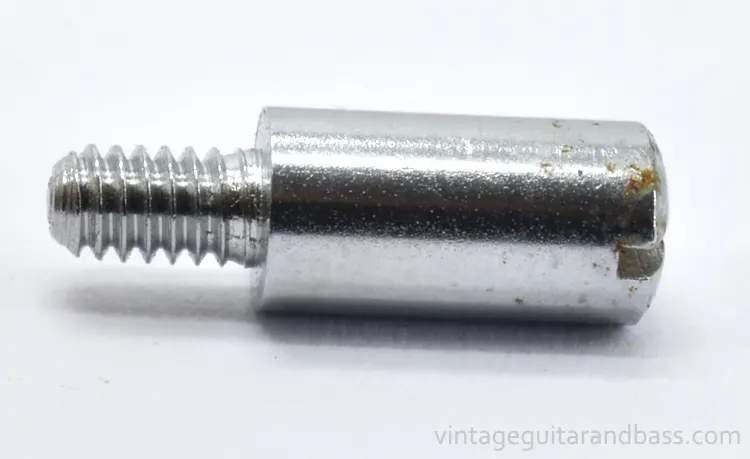 The polepieces simply unscrew from the frame beneath the former. Polepiece dimensions: 5mm diameter, 15.1mm long, 5.0mm of which is threaded (pre-1967 JIS M3, with 0.6mm pitch). Very similar design pole pieces appear inside the Maxon humbuckers fitted to other Matsumoku guitars - another suggestion as to the origin of this pickup.