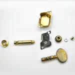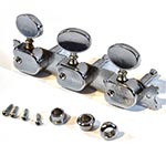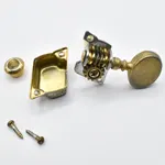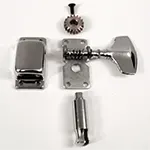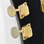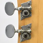 As fitted to a variety of electric guitars produced at the Matsumoku guitar factory, Matsumoto Japan from the mid/late 1960s to the mid 1970s. Available with gold or chrome plating. The gold-plated version typically appeared on Les Paul Custom style solid body guitars such as the Jedson Jet 4444, Shaftesbury 3400 and Univox The Mother U1982, whilst chrome-plated tuners were fitted to the Dorado 5988 and many others. more