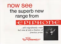 Scan of 1970 Epiphone guitar catalogue produced by Rosetti for the UK market. Undated but most likely from mid-late 1970, this was the first UK catalogue to show the new range of Japanese (Matsumoku) Epiphone guitars. Interestingly, these pages show the Epiphone solid bodies with a single-sided Fender-style headstock layout - a feature quickly replaced with a typical two-sided Epiphone headstock almost immediately. Epiphone electric guitars: 9520, 9525; bass guitars: 9521, 9526; acoustic guitars: 6730, 6830, 6834