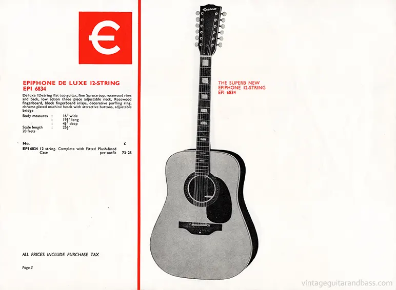 The 1970 UK launch price for the Epiphone 6834 12-string was £73.25.