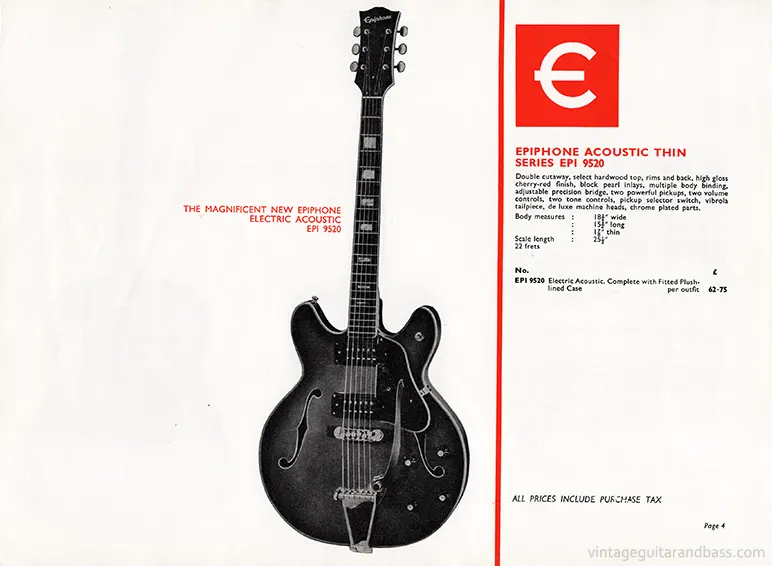 The 1970 UK launch price for the Epiphone 9520 electric semi-acoustic was £62.75.
