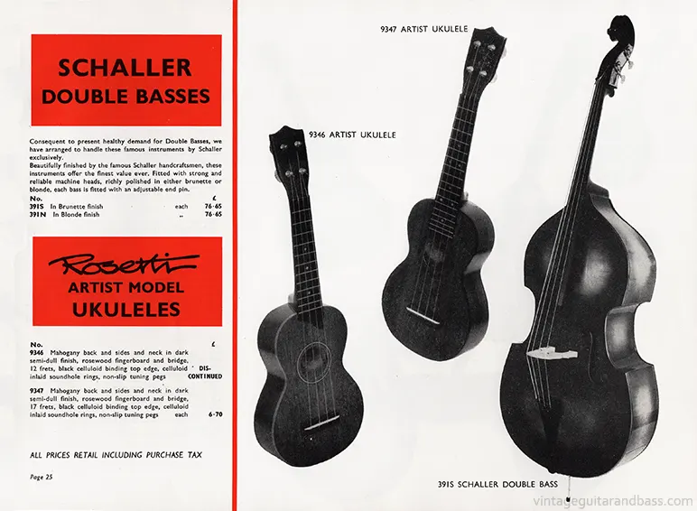 Schaller Double Bass 391S and 391N, and Rosetti Ukuleles 9346 and 9347