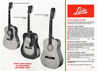 Another brand from Sweden. This catalogue has a three-page section of Levin fine acoustic guitars. These are the most expensive acoustic guitars available from Rosetti. Pages 9 to 11.