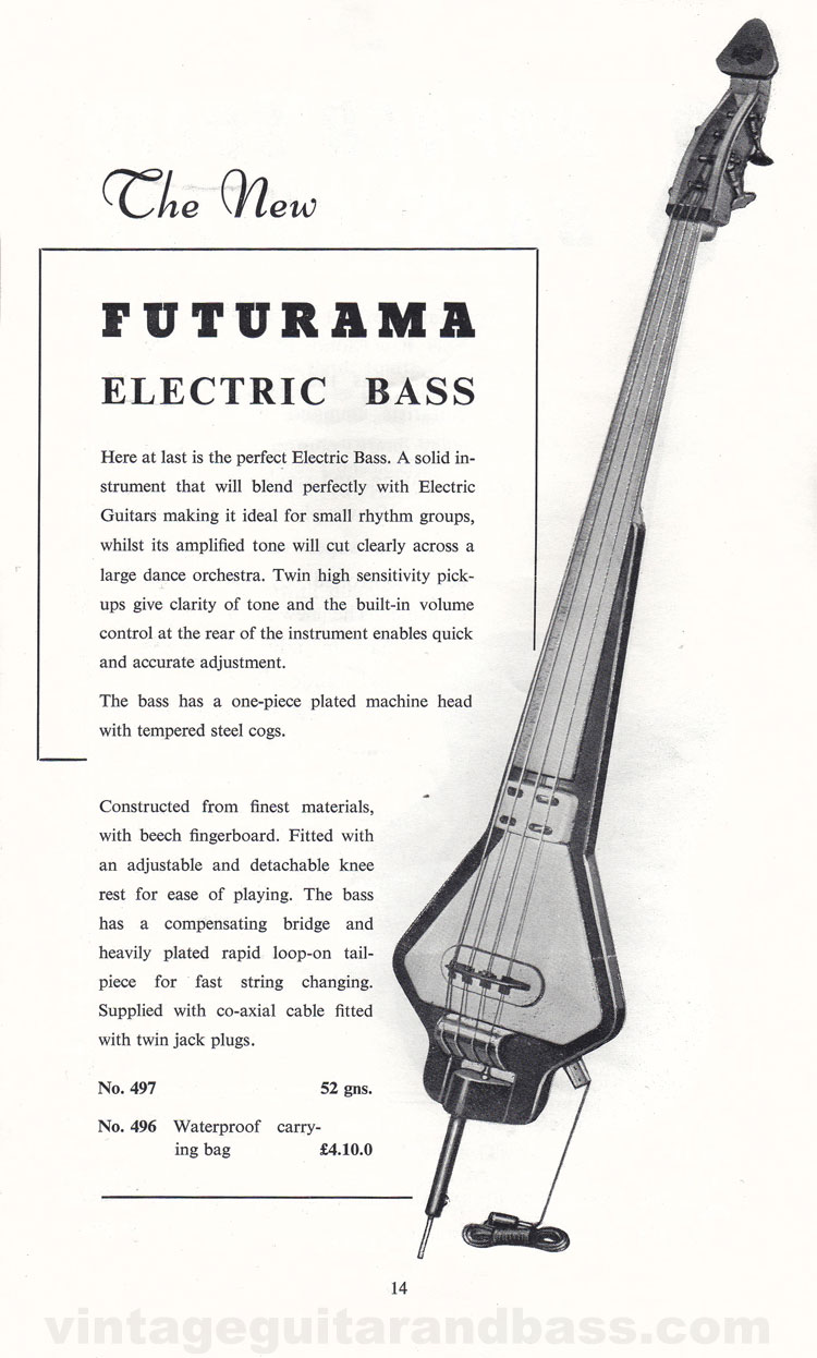 1960 UK Futurama electric upright bass price - 52 gns.