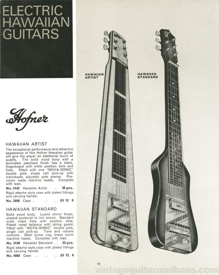 This page details the acoustic versions of two Hofner Electric Hawaiian guitars, the Artist and Standard.