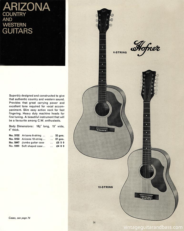 1968/1969 UK prices for the Hofner Arizona guitars were as follows: