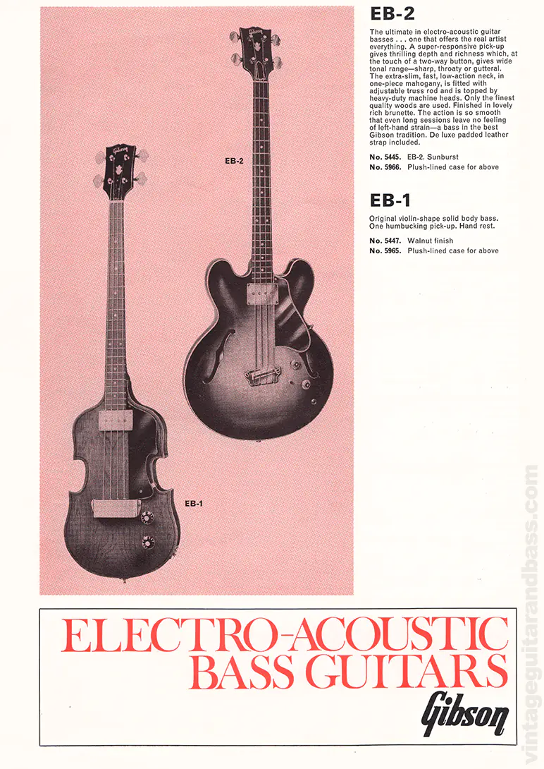 The Gibson EB-1 bass was a short lived model with the bulk of production in the period 1970-1971. This then, is the final UK catalogue appearance of both the EB-1 and single pickup EB-2.