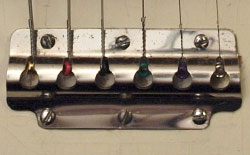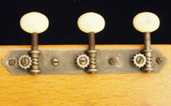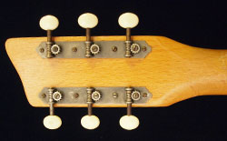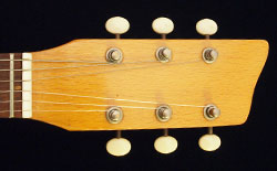 So what features suggest this guitar to be older than the very similar 1963 Vox Stroller also shown on this site? Firstly, and most obviously there is no serial number. These are usually stamped on the reverse of the guitar headstock, near the tuning keys. It seems that the very earliest Vox guitars may have had no serial numbers. On the other hand, Vox produced a self-assembled version of the Stroller at this time, called the Pacific kit. It may be that Pacific Stroller had no serial numbers, and this is one of those. Secondly, and probably more importantly, is the pickup. Although it looks the same as the Vox V1 pickup, and is functionally much the same, it is made to different dimensions, being wider and ever so slightly longer. What's more, these pickups are made to imperial rather than metric dimensions, and never feature a Vox logo on the pickup cover. Lastly, the screws throughout this guitar are all slot head design; pickguard, pickups, tuning keys; there are no exceptions. The 1963 Vox Stroller uses cross-head screws throughout, again without exception.