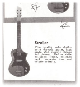 Vintage Japanese guitars are well known for being copies of guitars produced in the rest of the world, however the earliest versions of the Vox Stroller were actually copies of Japanese guitars. The Guyatone LG-50 (also produced under the Antoria brand), was well known in the UK in the late 1950s, being used by the likes of Hank Marvin of the Shadows and Rory Storm.