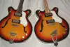 Some instruments also came with a gold-plated Tremolo arm, although the actual tailpiece was unchanged with or without it. At least three finishes were available, sunburst, cherry red and a greenburst. The two guitars shown here are incomplete (left - no pickguard, right incorrect control knobs), and both have had their pickups rotated. Both images courtesy fetishguitars.com