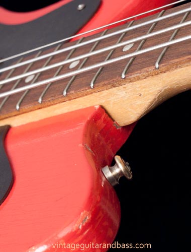 The L-shaped plastic nut shown here was only fitted to certain budget models in 1963, and perhaps into very early 1964. This nut was lightweight and probably not especially durable, but this was not so much of an issue once paired with a zero-fret.
