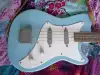 The Clubman bass was, after all, the least expensive bass in the Vox range, aimed at student musicians. It had a short (30") scale, but was relatively well equipped with twin Vox V1 pickups. Lightweight and very playable. At this point, the Clubman bass shared many parts with it's six-string equivalent, the Clubman guitar, including body, pickups, scratchplate, tuning keys; but not bridge or neck.