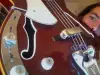The Hagstrom Swede bass, or model HB 903, was only built in small numbers: just 1479 basses shipped between 1971 and 1976. Unlike the current range of Hagstrom guitars, the 1950s-1980s Hagstroms were built in Sweden. This example comes from 1973 and is pretty typical: translucent cherry finish, mahogany body, mahogany neck with an ebony fretboard. It's a really nice bass, beautifully appointed with a very wide tonal range, and a great playing feel. It is relatively heavy though for a mahogany instrument, mostly due to its thick solid body. Very cool bass, and certainly one of the very best basses produced by Hagstrom.