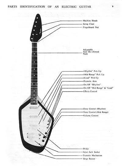 Aswell as the adverts their are numerous pictures of the (obviously then brand new) Vox Phantom and Vox Phantom bass, including a detailed part identification chart. The Phantoms shown in every case except the final advert, are equipped with the old-style chrome non-polepiece pickups, which were quickly replaced with white plastic units.