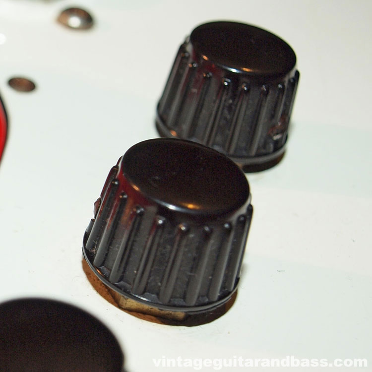 As fitted to a 1964 Vox Shadow. The controls of this guitar are: master volume, and separate tone controls for the middle and neck pickups. Read more, and listen to soundclips of the different pickups here.